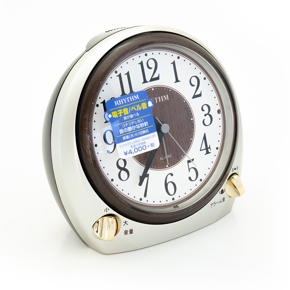 電子音とベル音が切り替えでき、音の大小も選択できる。コチコチ音がしない連続秒針。