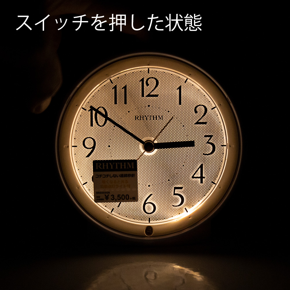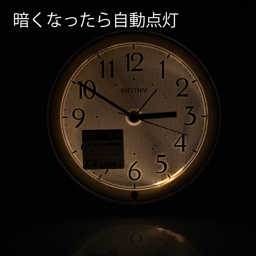 夜間常時点灯する目覚まし時計。暗い夜中は、ぼんやり光り、スイッチを押すとハッキリ光ります。しっかり明るい時計が欲しい方にオススメ。