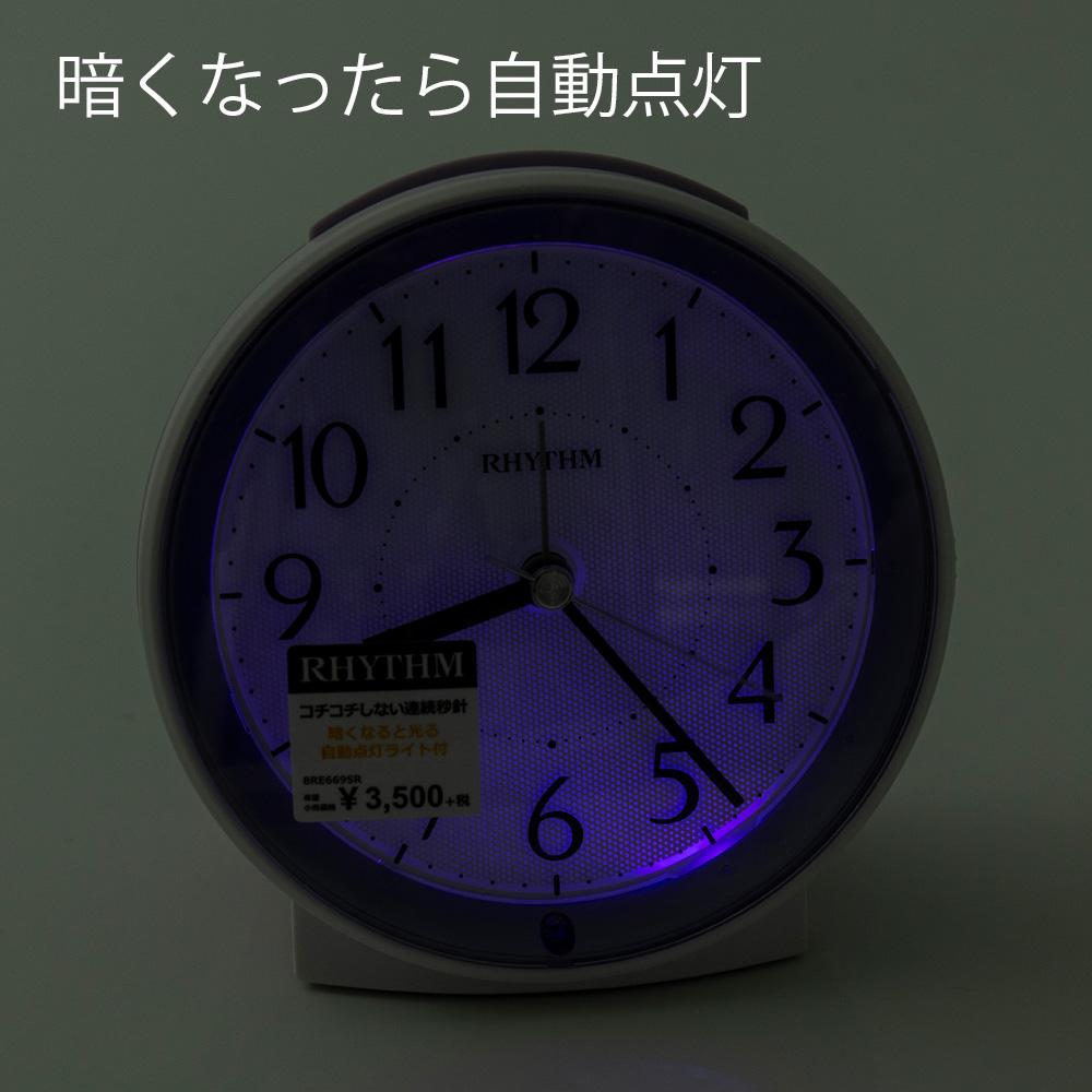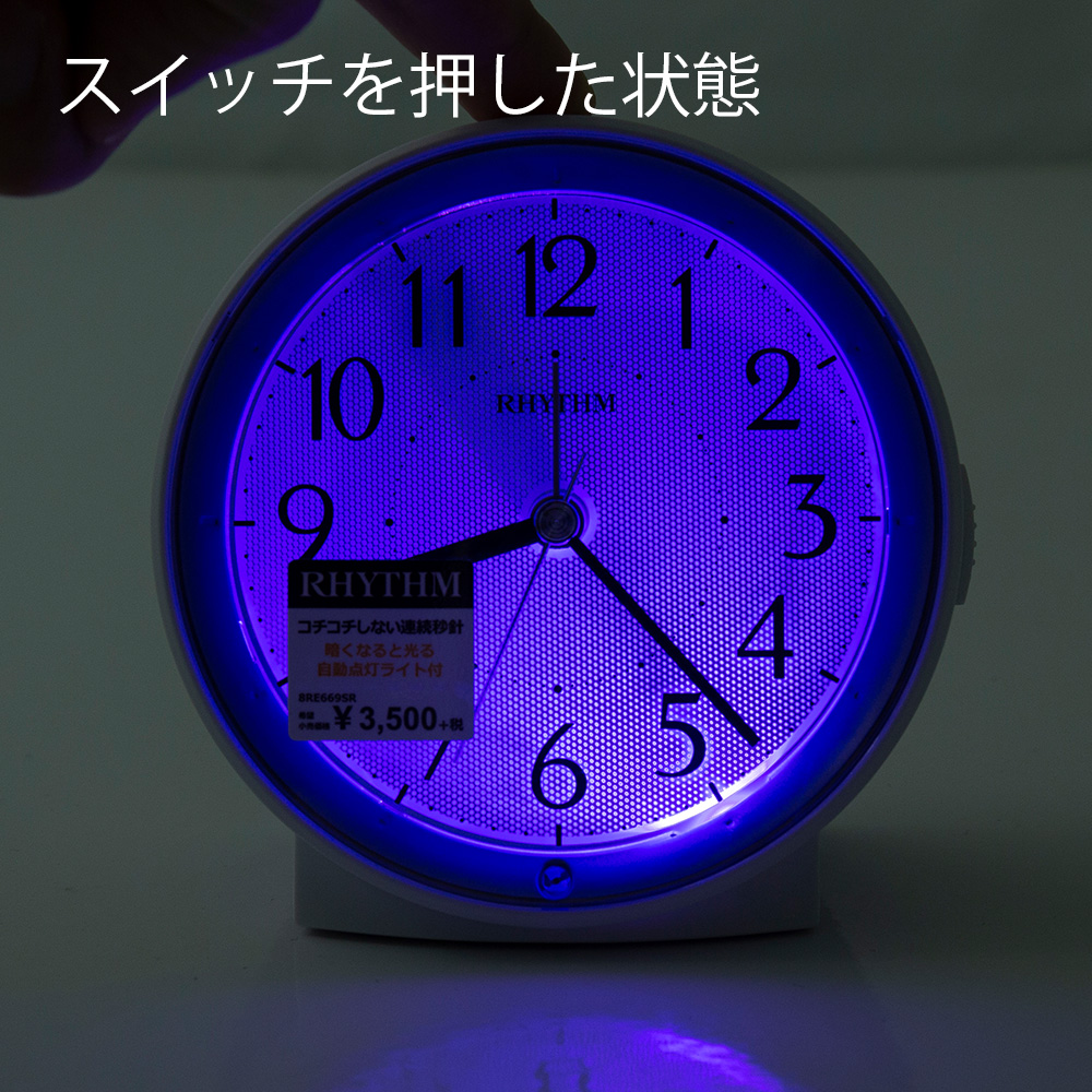 夜間常時点灯する目覚まし時計。暗い夜中は、ぼんやり光り、スイッチを押すとハッキリ光ります。しっかり明るい時計が欲しい方にオススメ。
