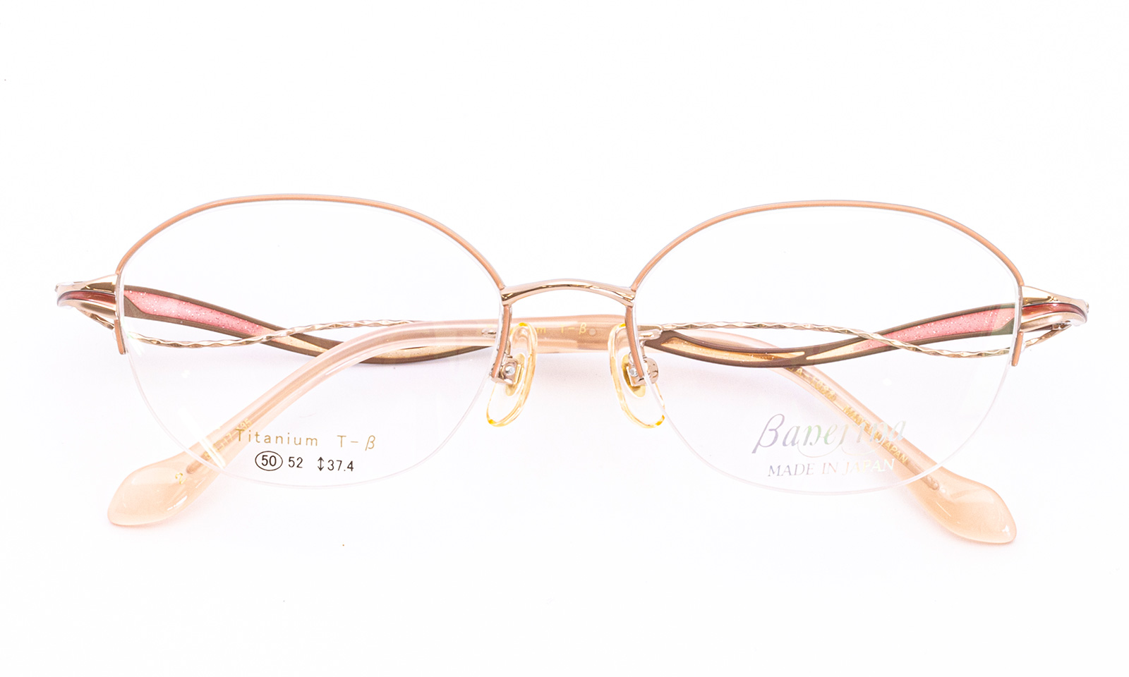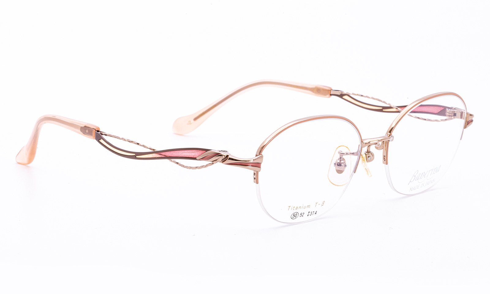 弾性のあるベータチタンプレートと、プレスでキラキラ感を出した曲線美がとても美しく、絶妙なフォールド感のある眼鏡フレーム。