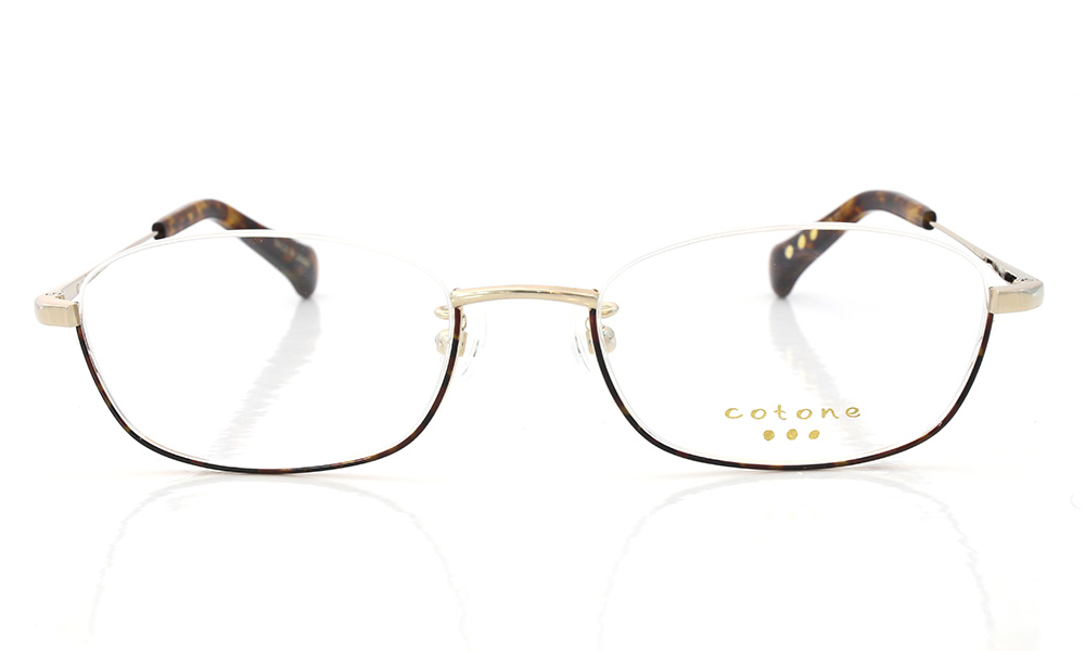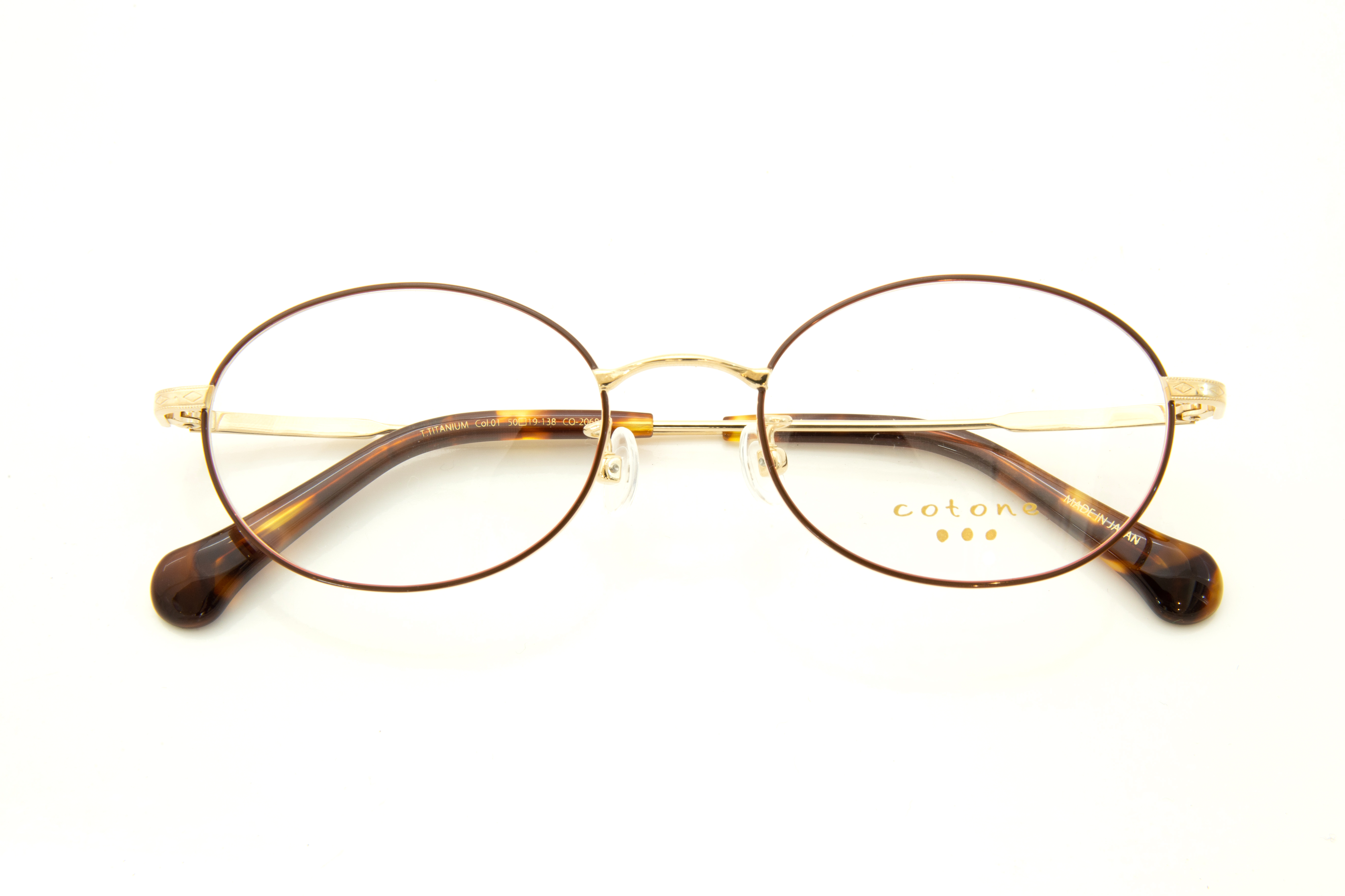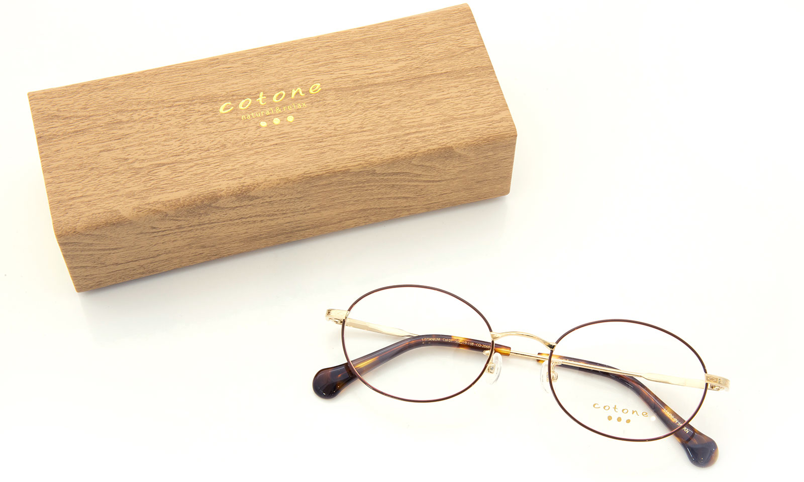 ○型のメガネフレーム。テンプルに細かな彫刻が施された上品な眼鏡フレーム。