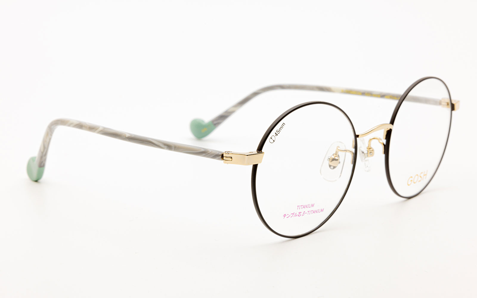 フロントは、チタンフレーム。テンプル芯は、弾性のあるβチタンで、掛け心地も良いフレームです。