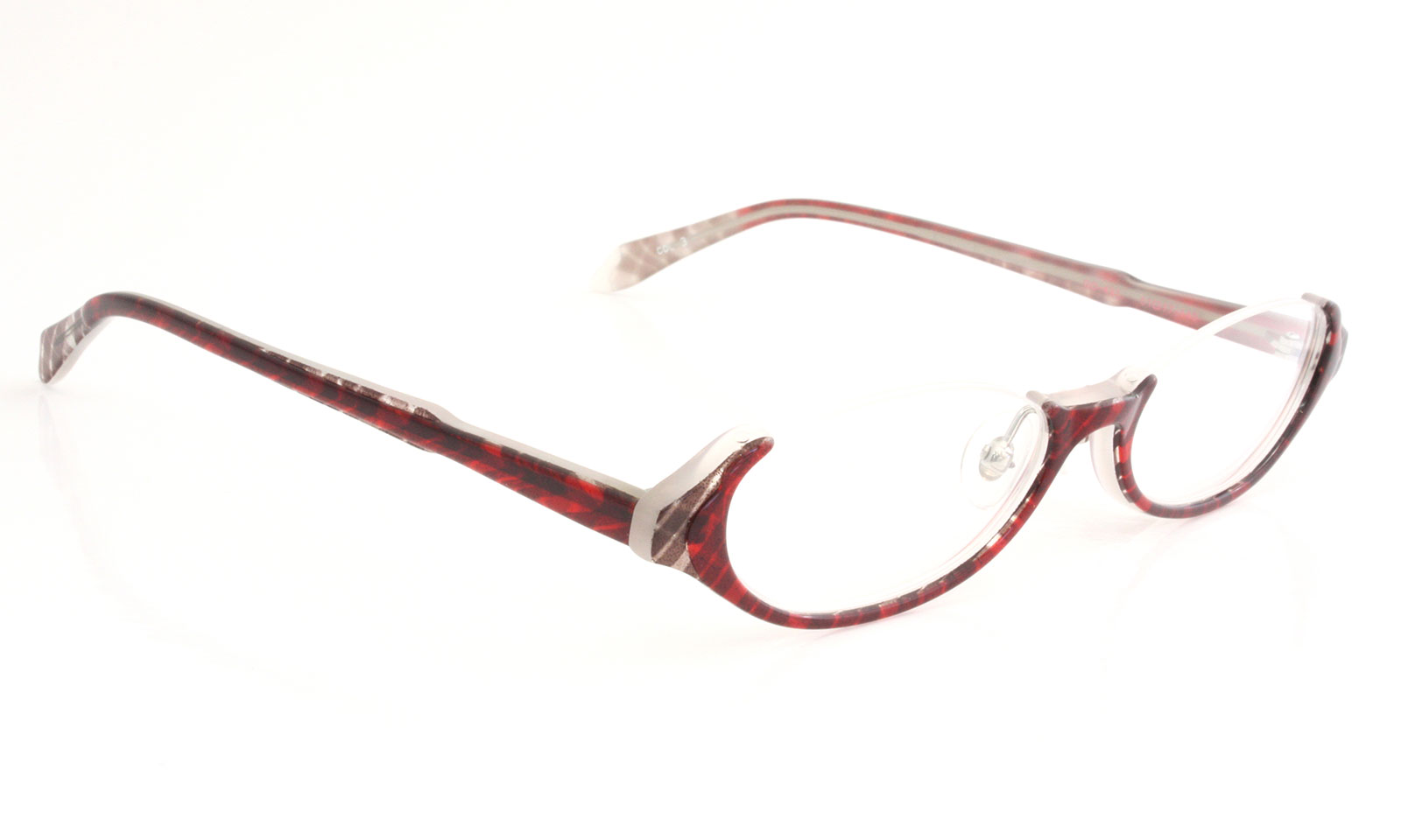 逆ナイロールが可愛いらしいメガネフレーム。読書や、PC作業等にオススメ。