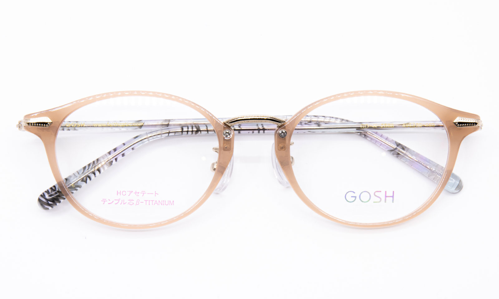 フロントは、HCアセテートフレーム。テンプル芯は、弾性のあるβチタンニウム。広がりずらいフィットするフレーム。