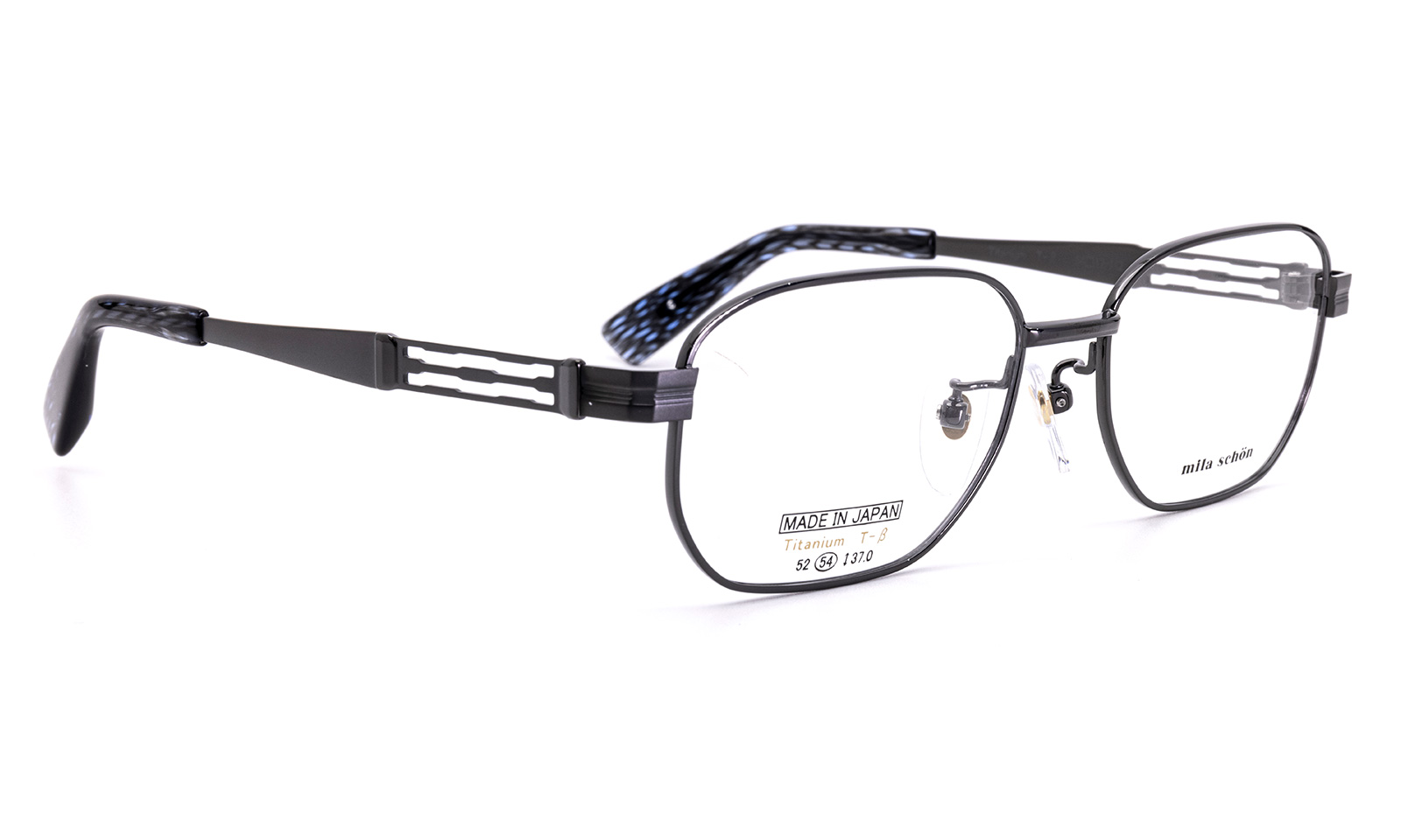 テンプルに弾性のあるβチタンを使用し、先セルも太く、高品質眼鏡フレーム。