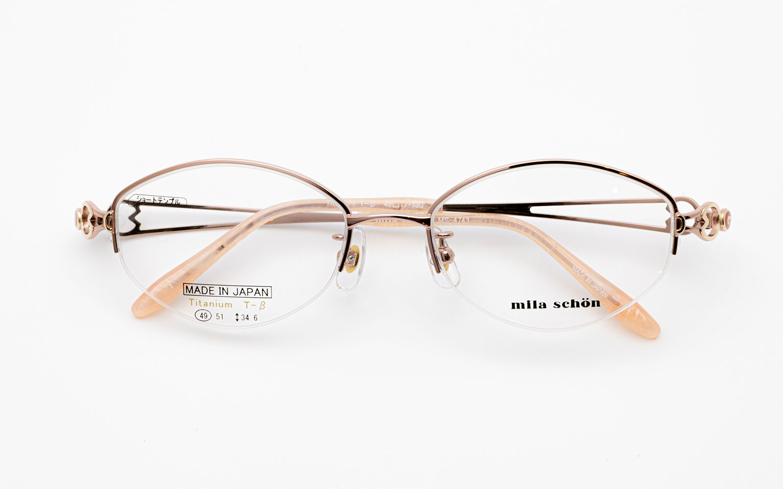 テンプルにロゴをあしらった国内製造の定番スタイルの眼鏡フレーム「ミラ・ショーン」。
