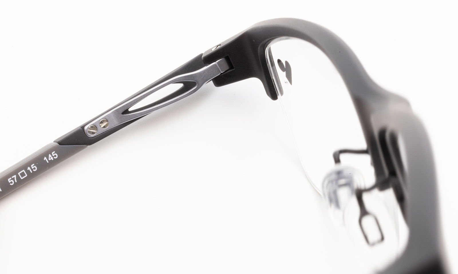 テンプルに板バネが付いた、フィット感が良い眼鏡フレーム。