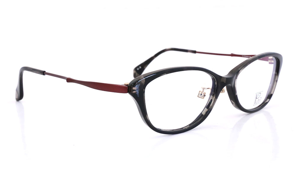 曲線が美しい眼鏡フレーム。フロントはセルテンプルは、チタン素材。