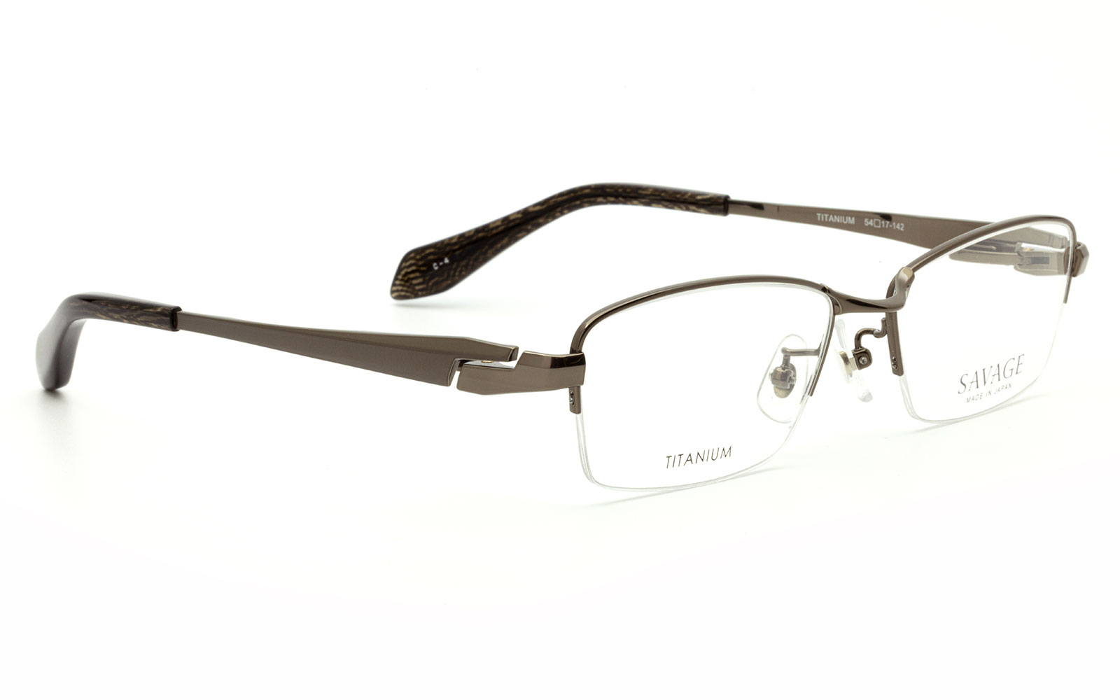 ヨロイとテンプルは、ハイプレス加工と削り出しヒンジ加工で重厚感と高級感を演出。