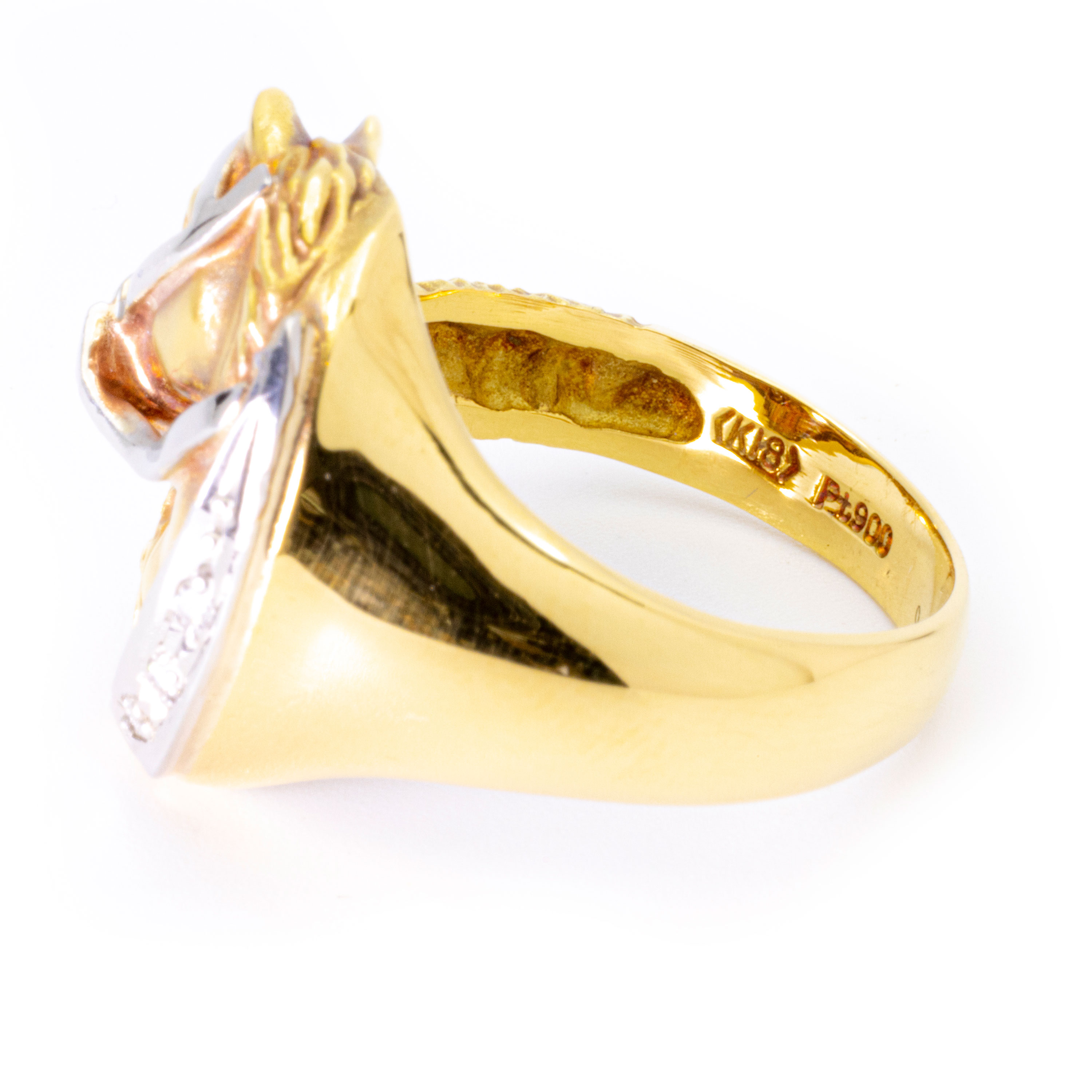 馬のデザインのファッションリング。地金はK18で、装飾の部分がPt900にダイヤが付いております。