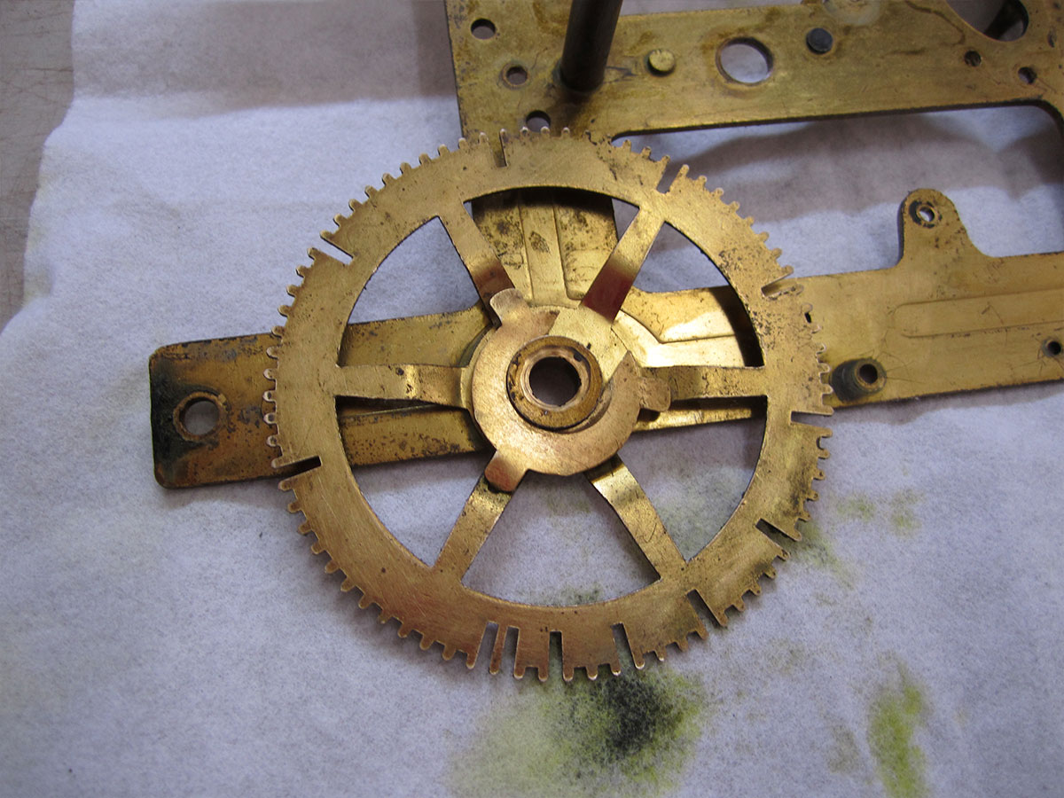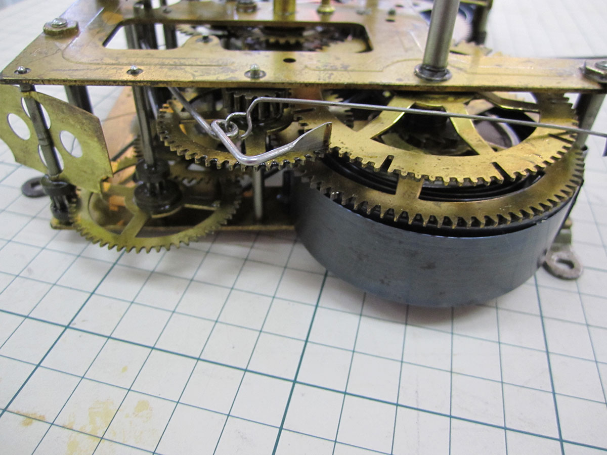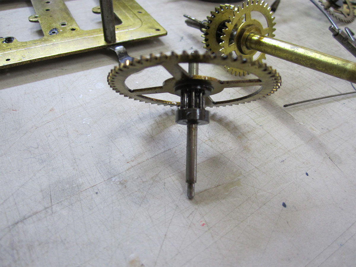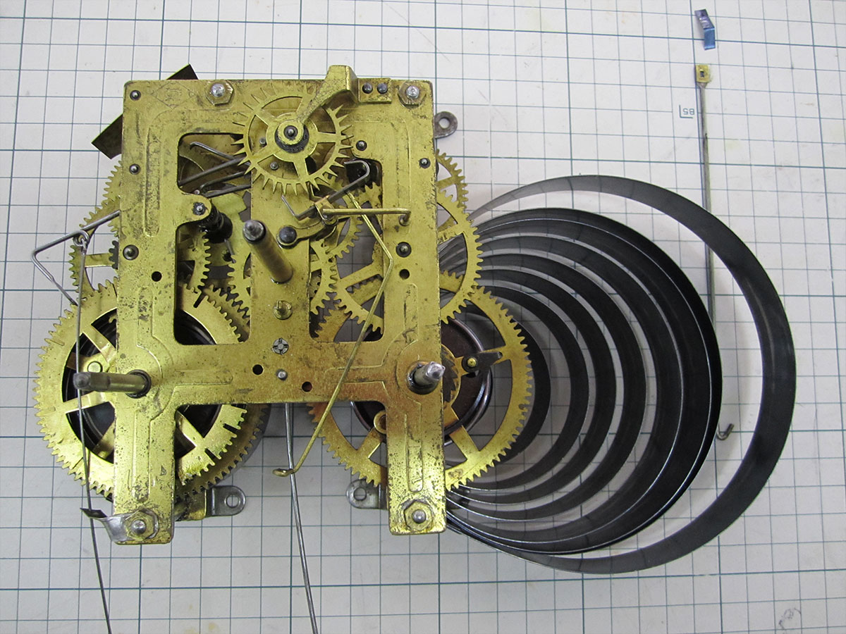 ゼンマイ切れの修理です。ゼンマイの片方が切れゼンマイが巻けない状態になっています。ゼンマイの残った中央部分を加工し、シャフトに引っかかるように加工します。あとは、摩耗した部分を修正。ガラスも制作し、ガラスを止めている部分も修理しました。