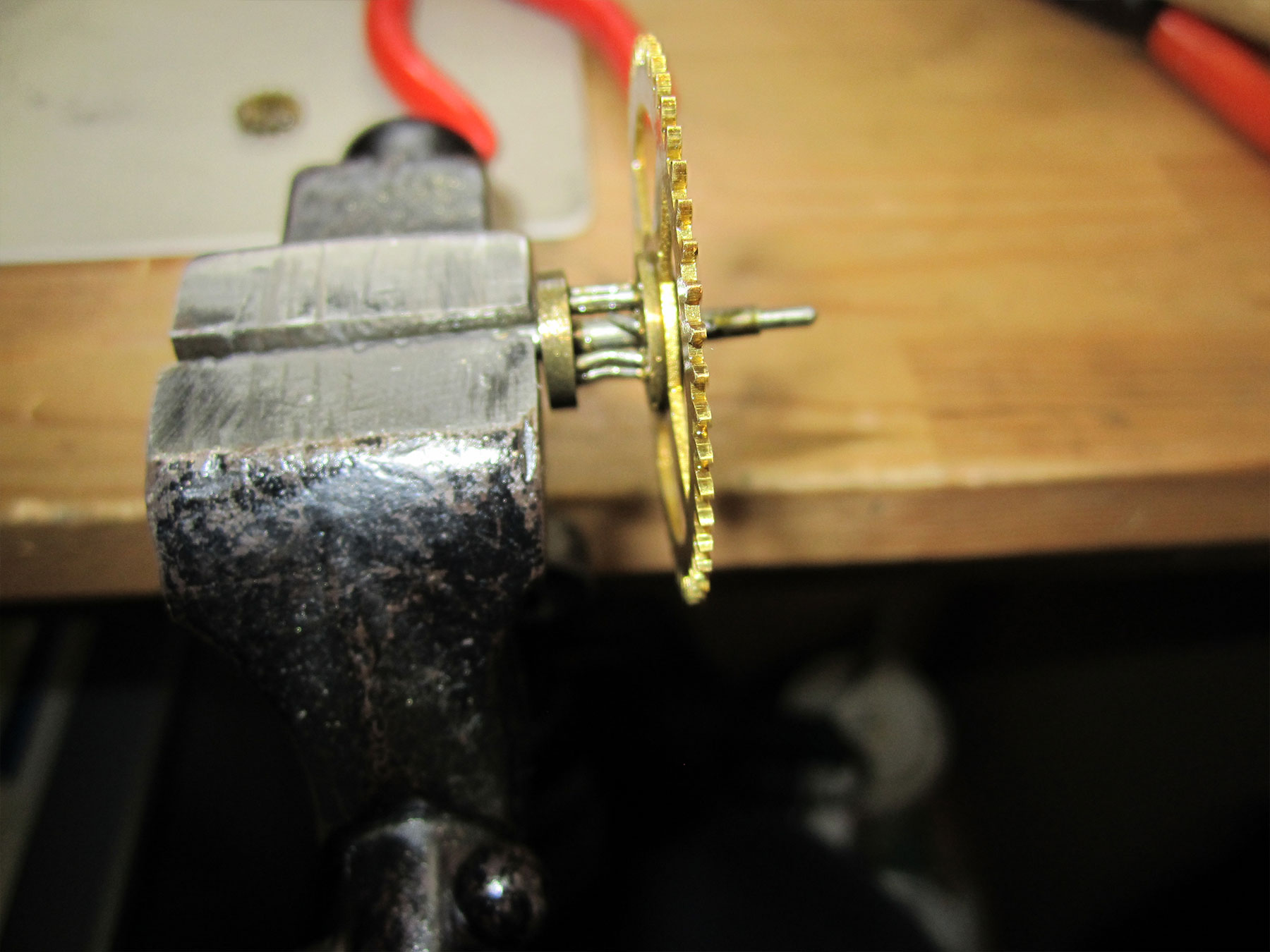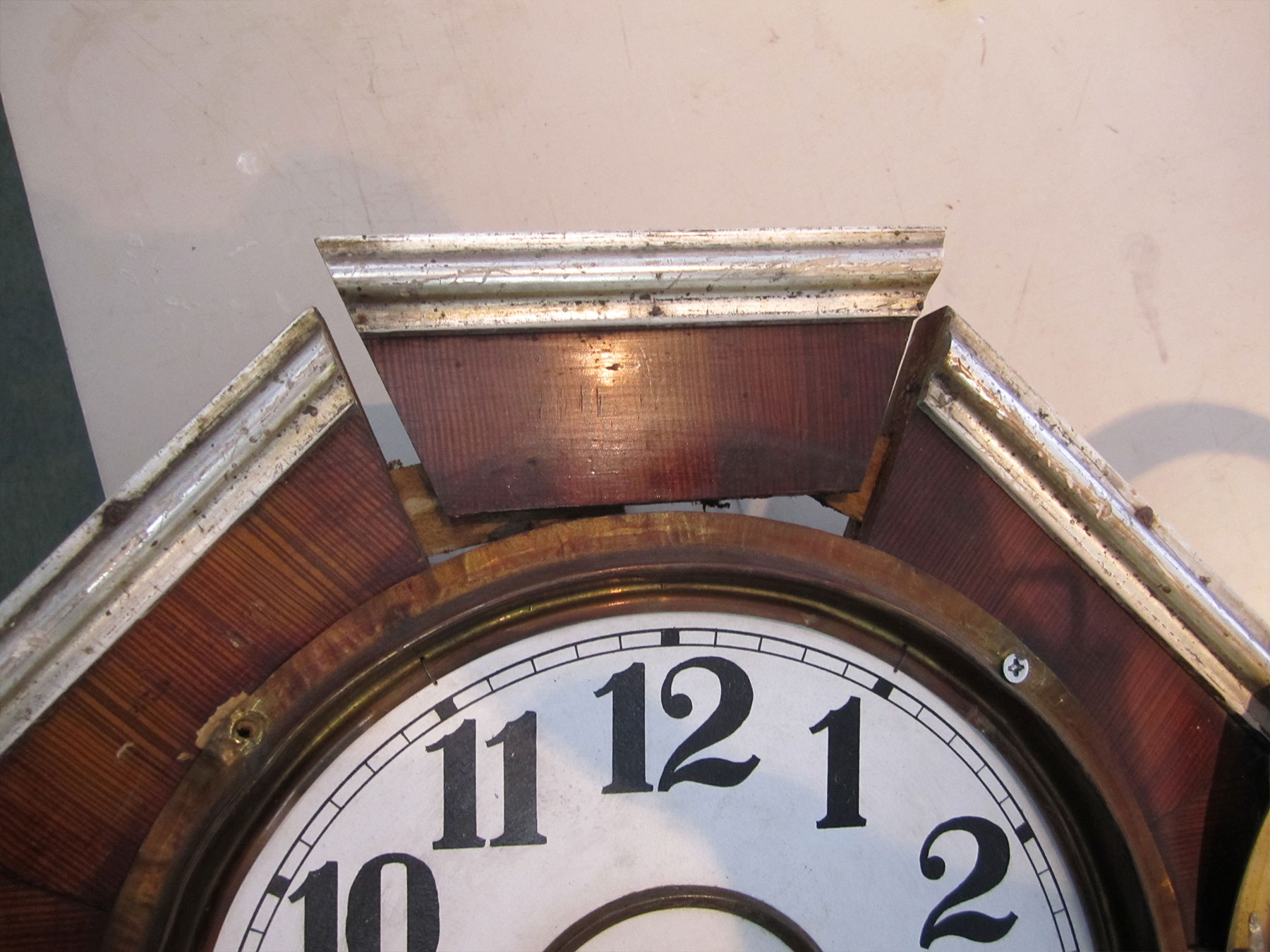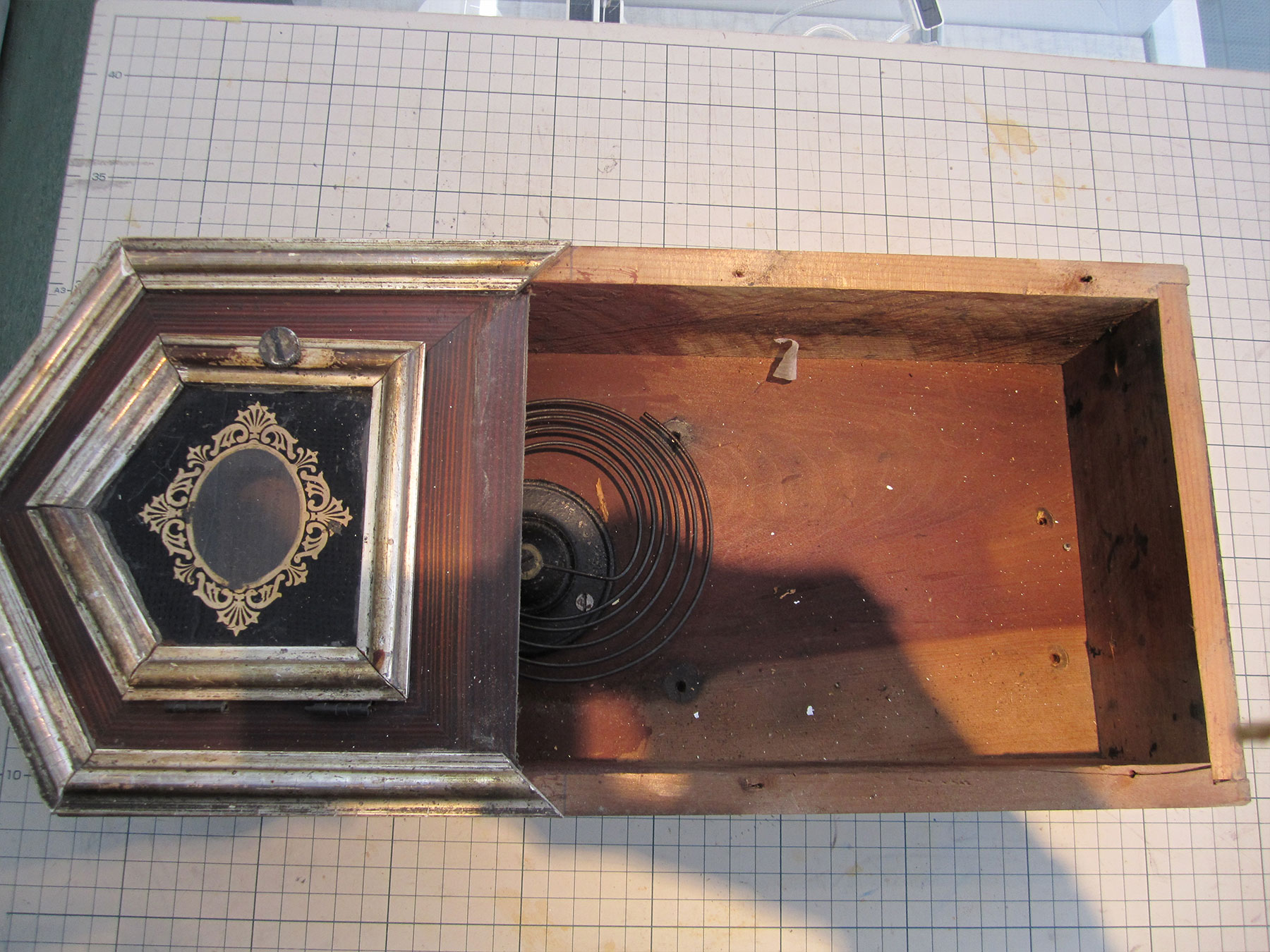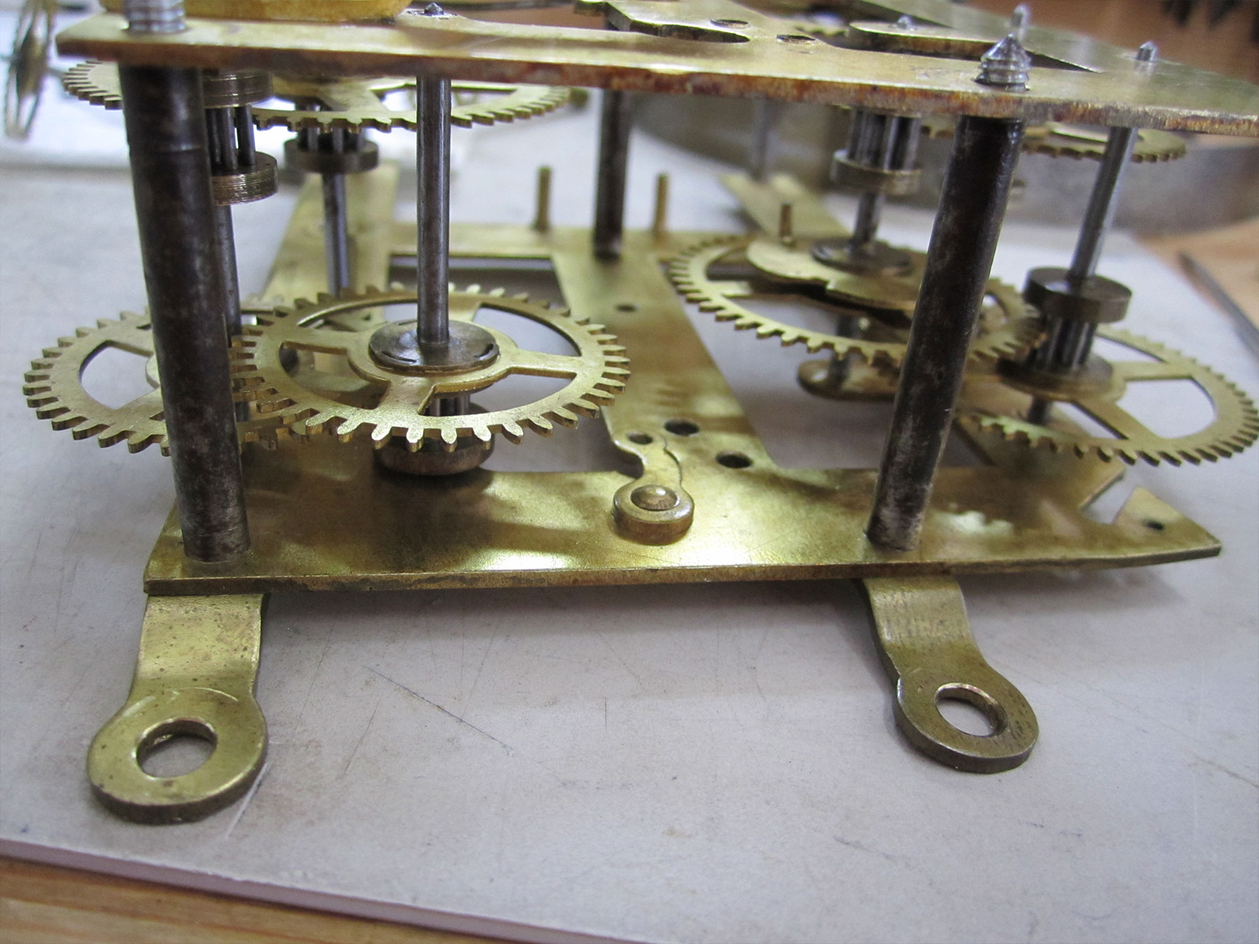 アイチ製のゼンマイ式8角型柱時計です。経年劣化による一部ケースの外れがあります。 まず、機械を取り出し、全面オーバーホール。シャーシから磨き上げギアの曲りと破損も修正。 ケースは、はずれを接着し直し、ネジ穴もゆるくなっているので埋め直し、新しい、真鍮のネジに変えて修理。