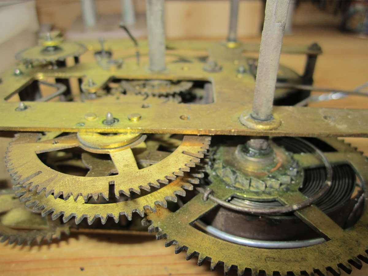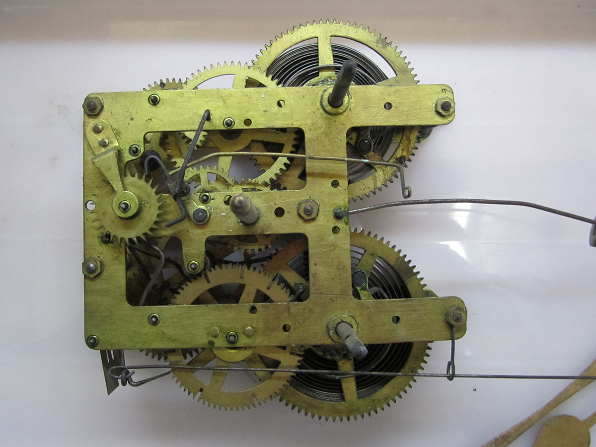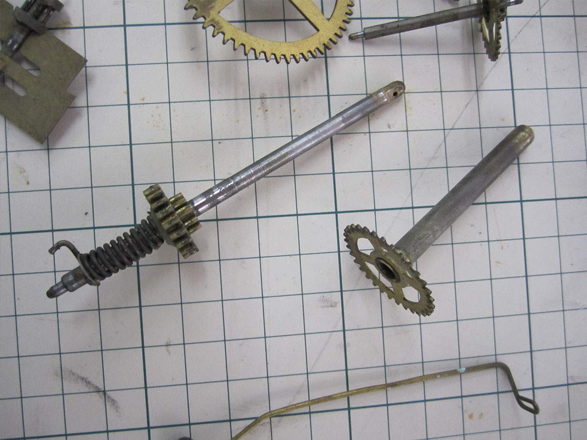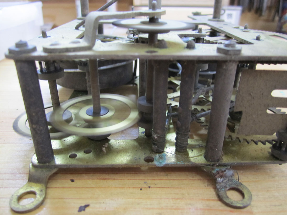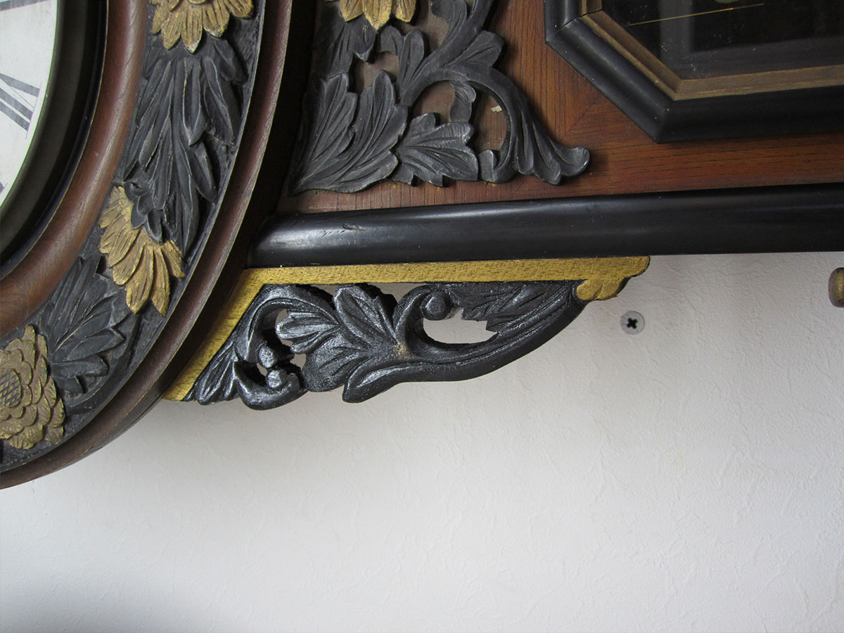 これは、左の飾りの破損と機械のオーバーホールです。 右側の飾りを参考に左の飾りを削り出し、機械も古いオイルのカスや摩耗が目立ちます。機械はすべて分解し、洗浄。摩耗箇所を修正。
